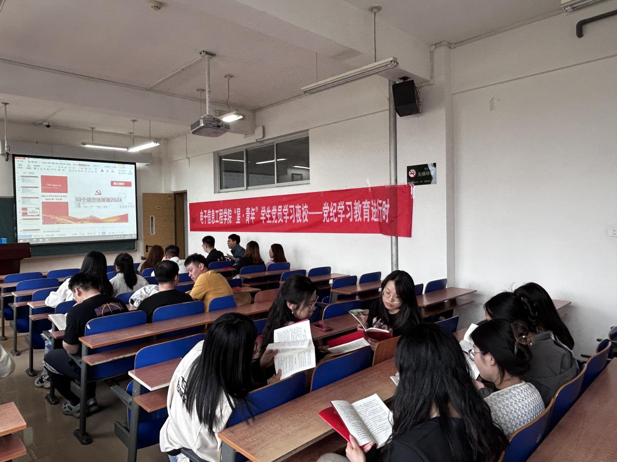 4月18日下午,按照党支部《中国共产党纪律处分条例》学习计划安排,四个学生支部通过“星·青年”学生党员学习夜校,开展了党纪学习教育“第一课”。党支部委员传达了刘志彧书记在学校党的建设工作领导小组(扩大)会议上的讲话精神和学院党委关于党纪学习教育启动会议精神,对开展党纪学习教育的意义、内涵等做了阐述。集中学习环节,各支部以党小组组长领学、成员带头研讨的形式,对《中国共产党纪律处分条例》总则部分进行了集中学习,并结合学习生活实际进行了讨论。