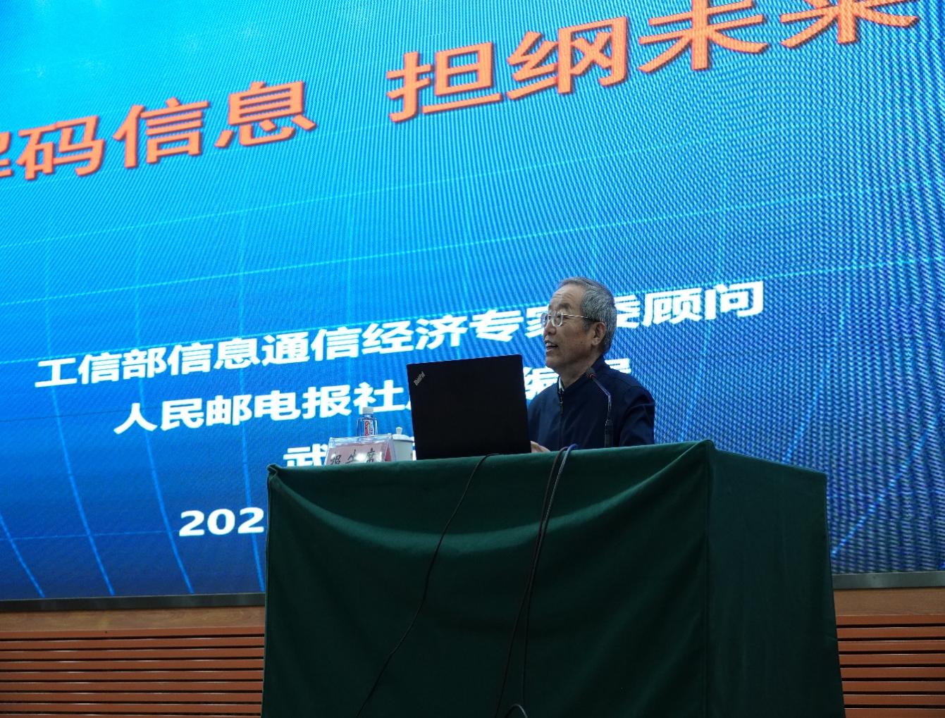 本次活动特邀工业和信息化部信息通信专家咨询委员会顾问、原人民邮电报总编武锁宁作了《解码信息 ,担纲未来》专题讲座,分别从“信息与信息社会”“信息与信息网络”“网络与网络强国”“网络与网络创新”“网络与千行百业”五个方面,全面解读了信息的深刻内涵,从信息技术发展演进和网络强国国家重点战略的10年实践成果,深刻剖析信息通信技术何以成为服务人类社会发展的重要支撑力量、信息通信业在数字化变革中的角色与责任以及信息通信技术在基础支撑、技术引领、生态赋能等方面发挥的重要支撑作用,充分阐述信息通信行业在当前数字化转型进程中的责任担当和光荣使命。