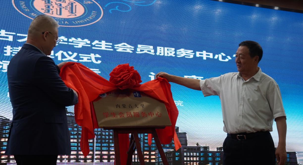 内蒙古自治区通信学会副理事长兼秘书长高虎智和太阳集团tyc9728院长王树彬共同为“通信学会9728太阳集团学生会员服务中心”揭牌。