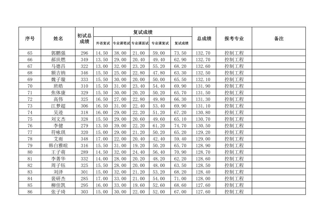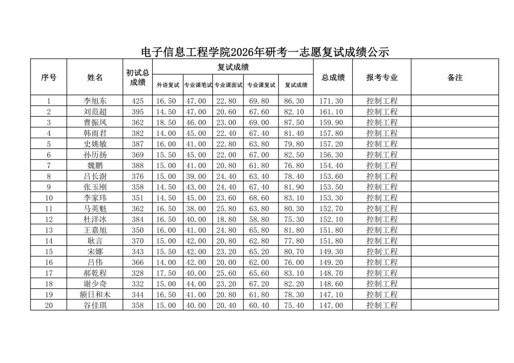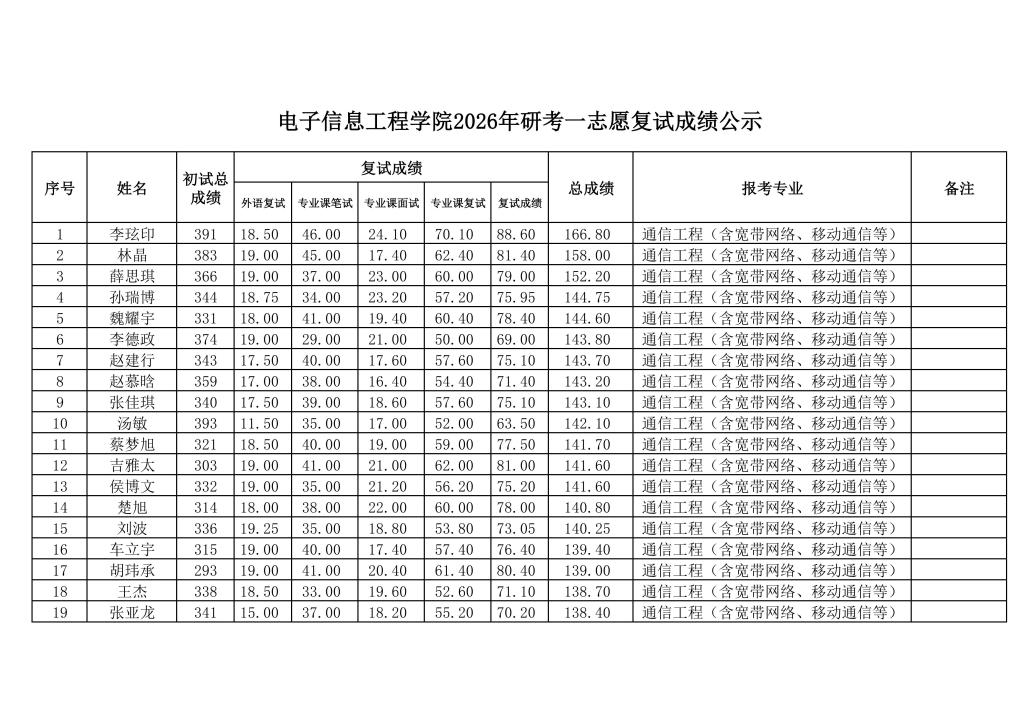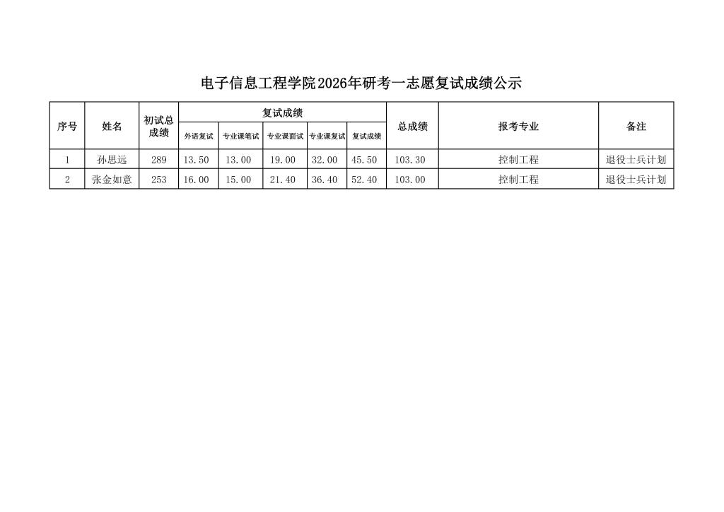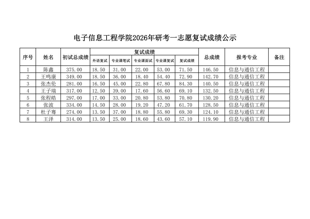 太阳集团tyc97282026年研考一志愿复试成绩公示