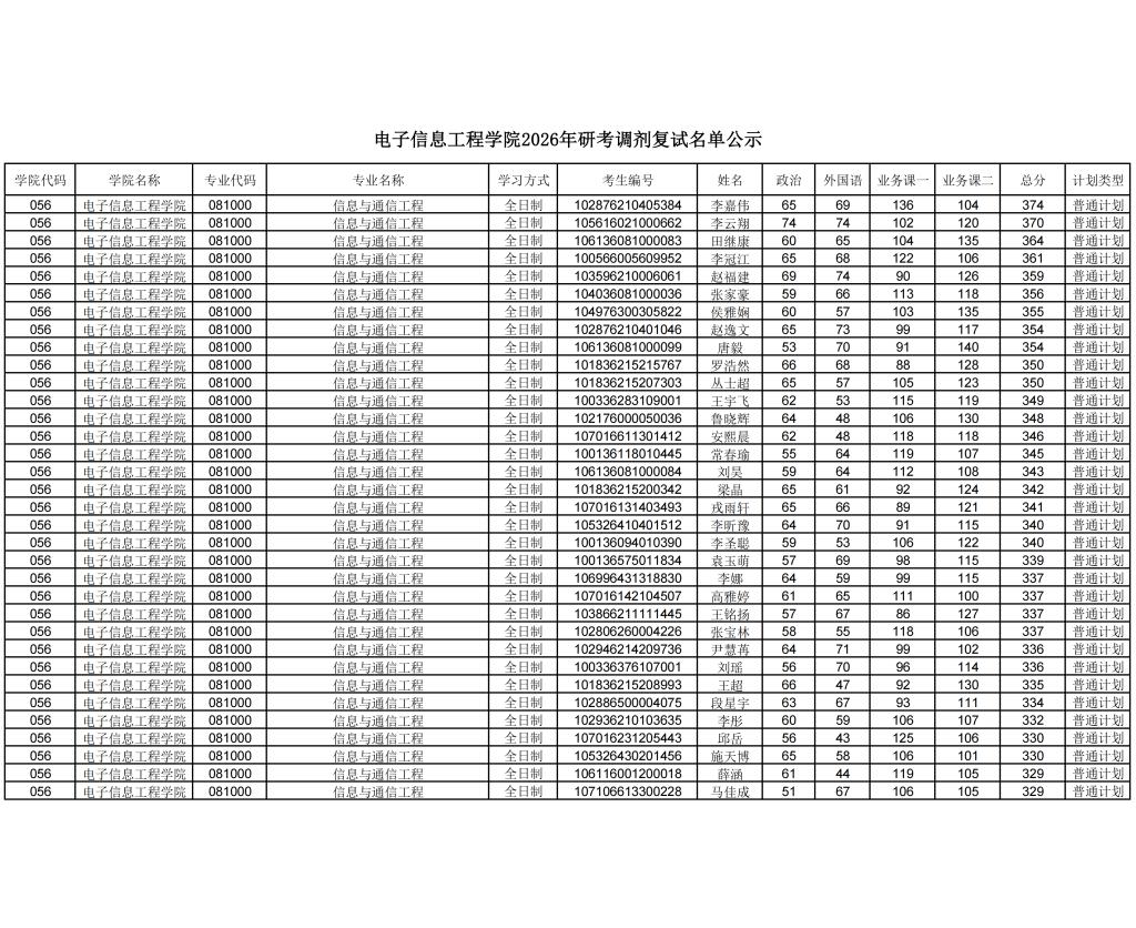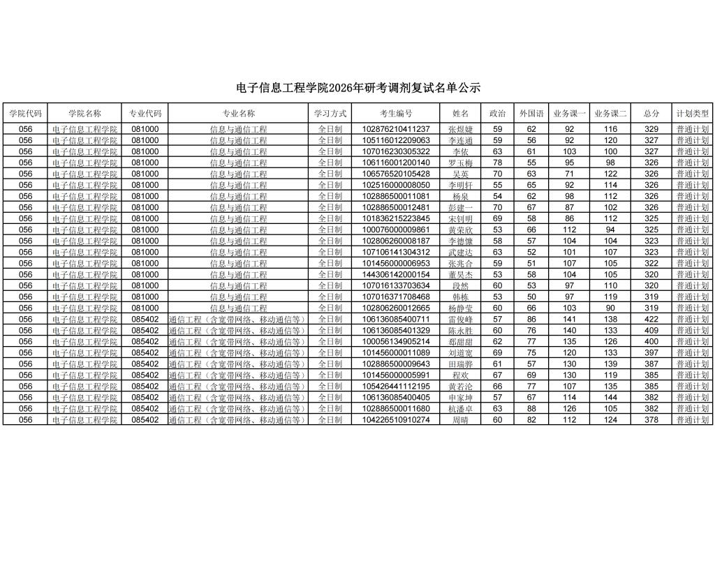 太阳集团tyc97282026年研考调剂复试成绩公示