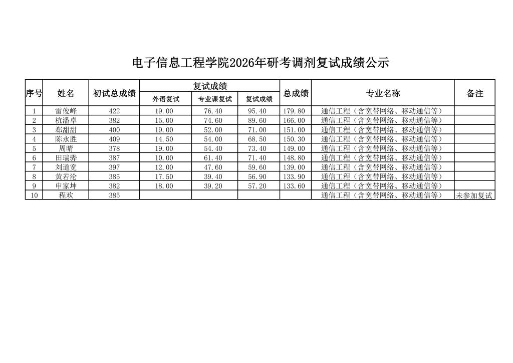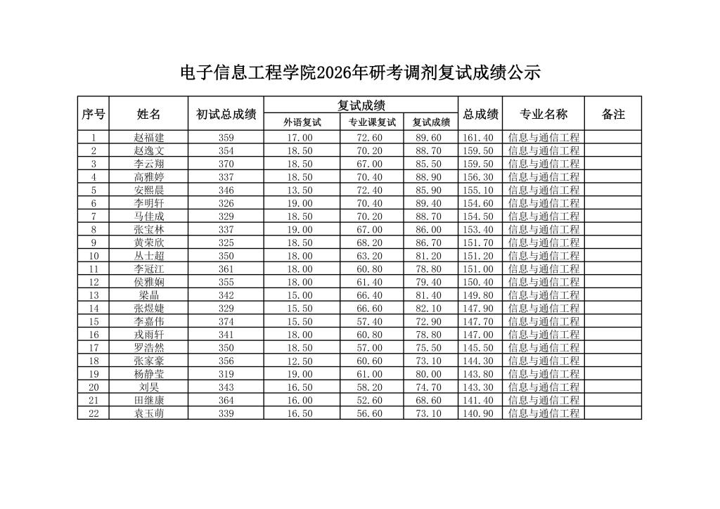 太阳集团tyc97282026年研考调剂复试成绩公示