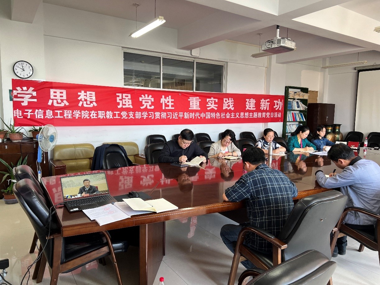 6月2日上午,太阳集团tyc9728在职教工党支部在卓越楼0617会议室组织开展学习贯彻习近平新时代中国特色社会主义思想主题教育集中学习。