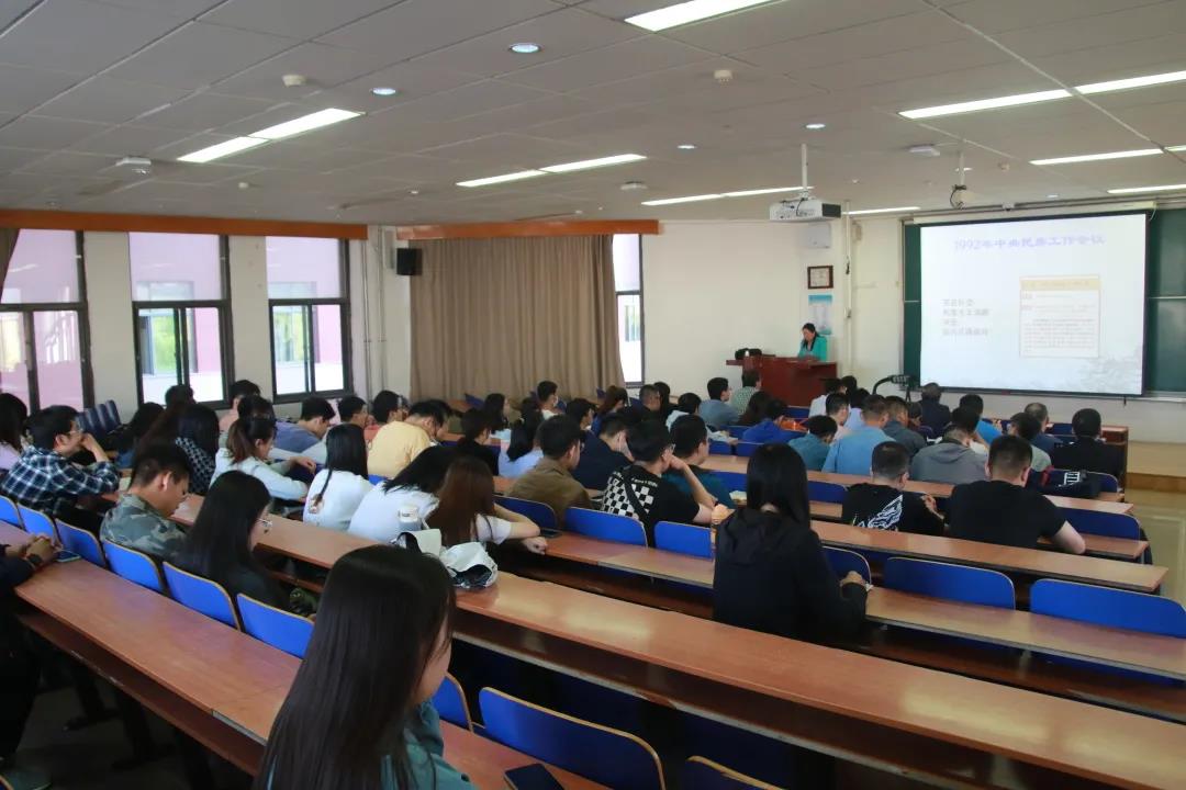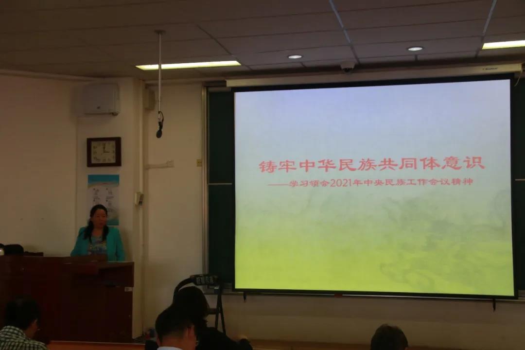 2021年9月30日下午15:00,太阳集团tyc9728在综合楼阶梯教室三举办党史学习教育专题学习班,邀请我校马克思主义学院赵丽华副教授作题为《铸牢中华民族共同体意识——学习领会2021年中央民族工作会议精神》的讲座。本次专题学习由太阳集团tyc9728党委书记李宏宇主持,学院全体党员参加。