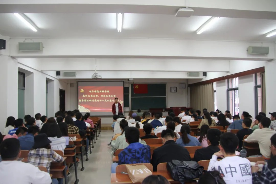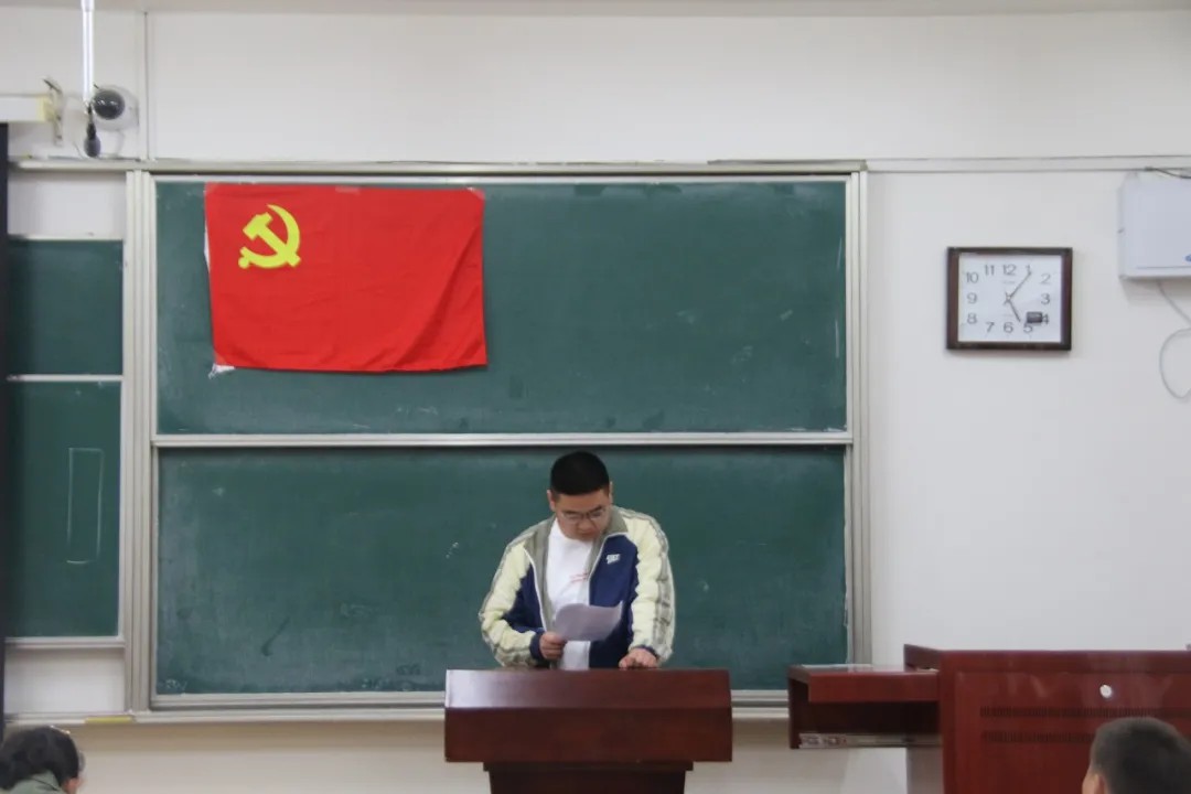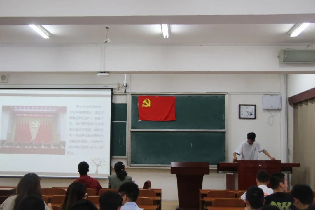 首先,白云波老师带领大家学习了《中国共产党普通高等学校基层组织工作条例》。随后,与会人员学习研讨了党的十八大以来的历史,几位学生党员代表带领大家回顾了党的十八大以来所取得的伟大成就,并结合自身认识交流了学习体会。