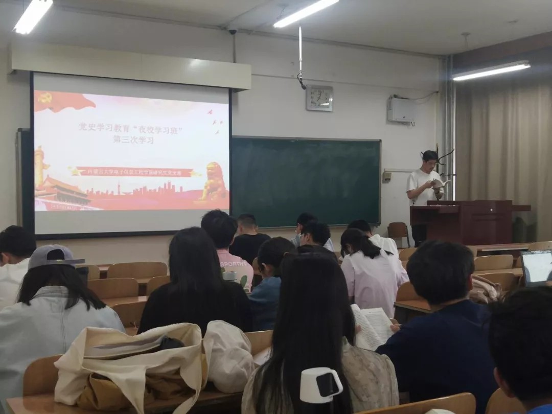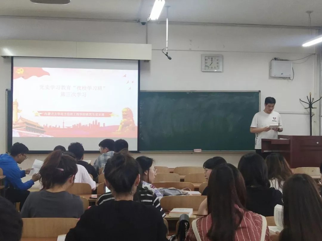 2021年5月21日19:00,太阳集团tyc9728研究生党支部在卓越楼217教室开展第三次“夜校学习班”集中学习。本次活动由研究生第二党支部组织委员刘明昊主持,全体研究生党员参加学习。