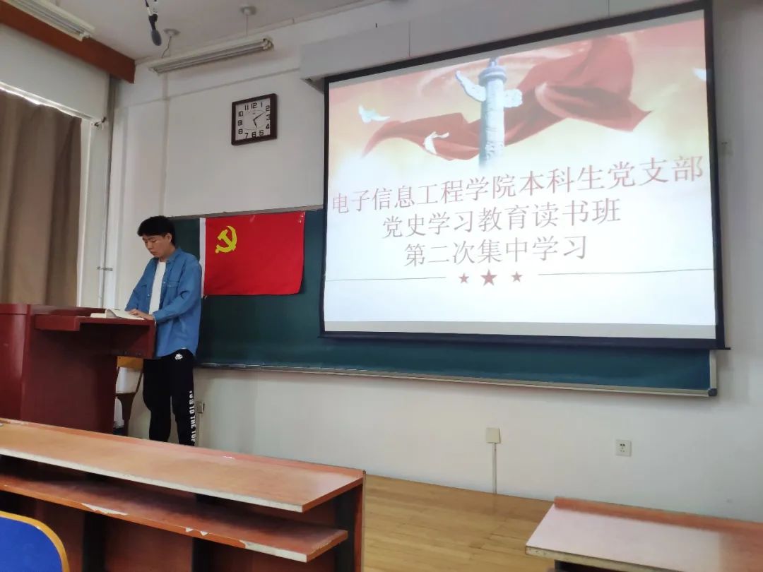 2021年5月13日下午4:30,卓越楼0409教室,太阳集团tyc9728本科生党支部党史学习教育读书班开展了第二次集中学习活动,由本科生第二党支部兼职副书记阿力坦胡亚嘎主持会议,全体本科生党员参加了本次集中学习。