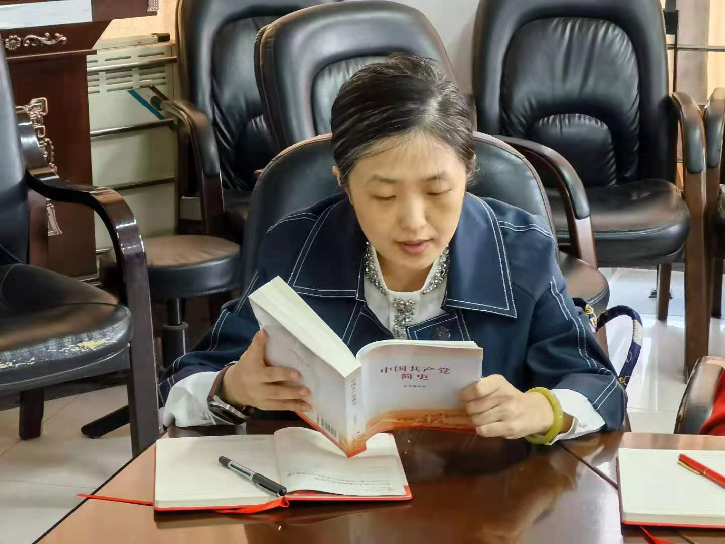 会上,雷雪梅书记为全体在职教工党员发放了学习材料——《中国共产党简史》并对读书班的开展作出具体安排。随后,与会在职教工党员依次朗读《中国共产党简史》中第一章“中国共产党的创建和投身大革命的洪流”的内容,大家共同学习并进行了深入研讨。