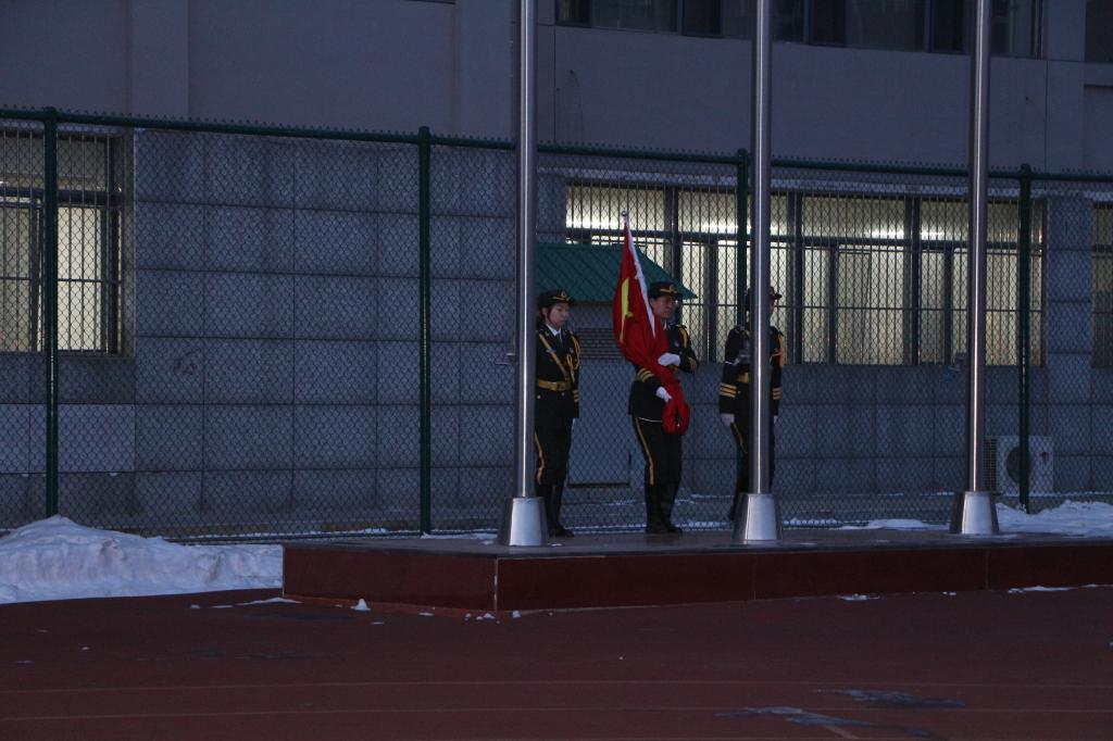 七点整,国旗护卫队的队员们迈着坚定有力的步伐走向国旗,当国旗飞舞在空中时,铿锵激昂的《义勇军进行曲》响彻操场。同学们怀着对美好未来的憧憬,以饱满的精神状态迎接新学期的到来!