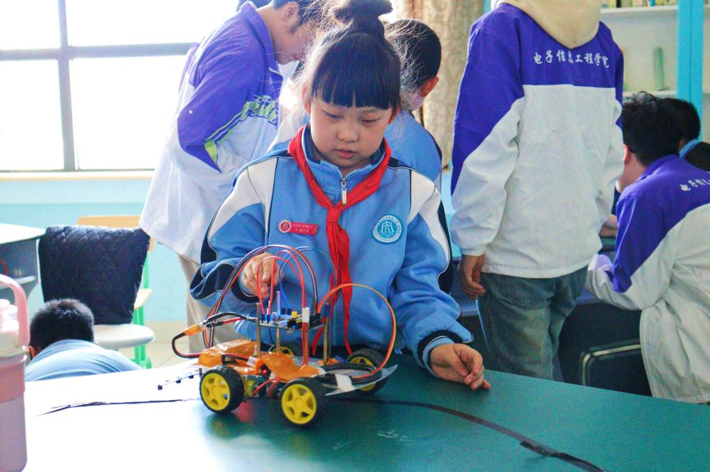 2024年3月7号星期四下午,太阳集团tyc9728“创新之家”的同学们前往9728太阳集团附属小学为孩子们开展有关循迹车科普的趣味小课堂。让小朋友们在“科学探索之旅”中活跃思维,在“大手拉小手”的互动课堂上锻炼动手能力。