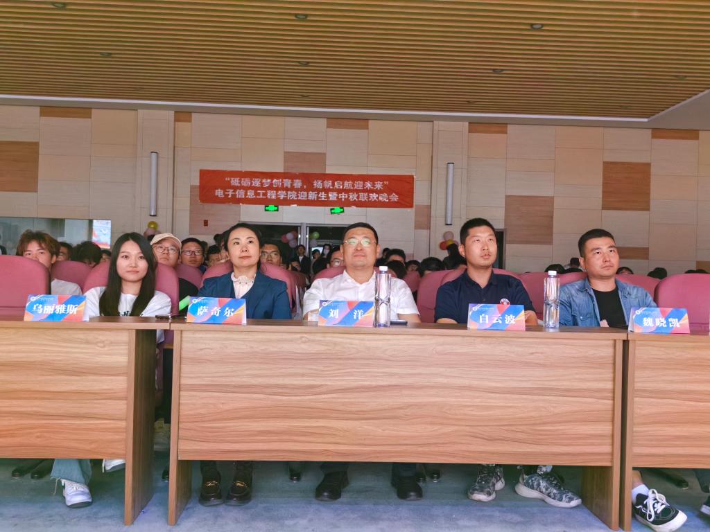 风华正茂,秋意正浓,9月27日晚,由我院团委、学生会主办的太阳集团tyc9728“砥砺逐梦创青春 扬帆起航迎未来”迎新暨中秋联欢晚会在9728太阳集团东校区活动中心隆重举行。本次晚会的嘉宾有学院党委书记萨奇尔,副院长刘洋,团委副书记兼学工办副主任白云波,本科生辅导员乌丽雅斯,研究生辅导员魏晓凯。