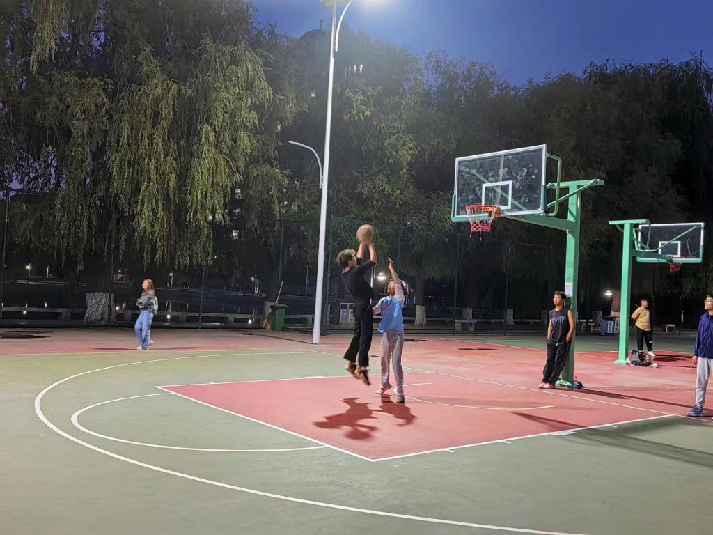 球员们斗志昂扬,运球步履生风;在观众的助威呐喊中,上演一幕幕精彩片段。防守、进攻、抢断,投球,双方不甘示弱,尽情挥洒汗水。