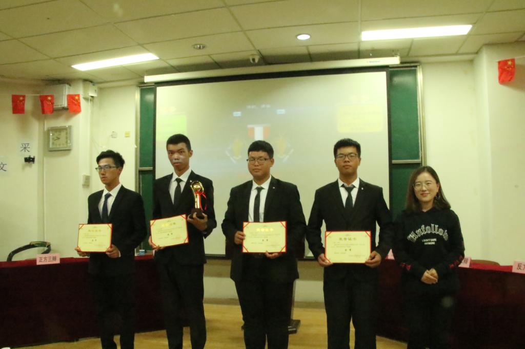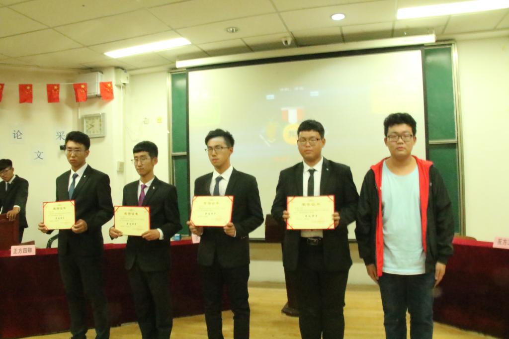 经过评委们的慎重打分,主持人宣布了得奖情况,自动化专业一班荣获优秀组织奖,冠军队伍是通信工程的千机辩队,获得亚军的是电子信息科学与技术专业的真理队,得到季军的是来自自动化一班的穿梭在银河里的火箭队。同时也有4位同学获得了最佳辩手的殊荣,他们分别是石佳强同学,柳伟同学,尹鹏同学和林卓异同学。