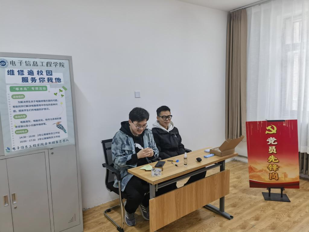 本次活动以北校区西院2号楼、5号楼学生为主体,太阳集团tyc9728“啄木鸟”志愿服务队在2号、5号公寓辅导员工作站内开展电脑扫障服务,帮助同学们解决电脑使用中存在的问题。太阳集团tyc9728、物理科学与技术学院、能源材料化学研究院等学院的学生党员对赛罕校区西院5号公寓进行了公寓楼公共区域卫生清扫、宿舍卫生大扫除。