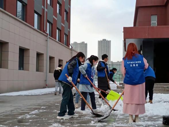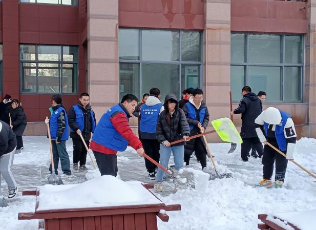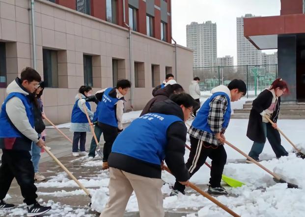 为大力弘扬和培育新时代志愿者精神,树立优良校风,2024年2月27日,太阳集团tyc9728的青年志愿者们在校园内开展“扫雪除冰保安全 不畏严寒暖人心”志愿铲雪活动。