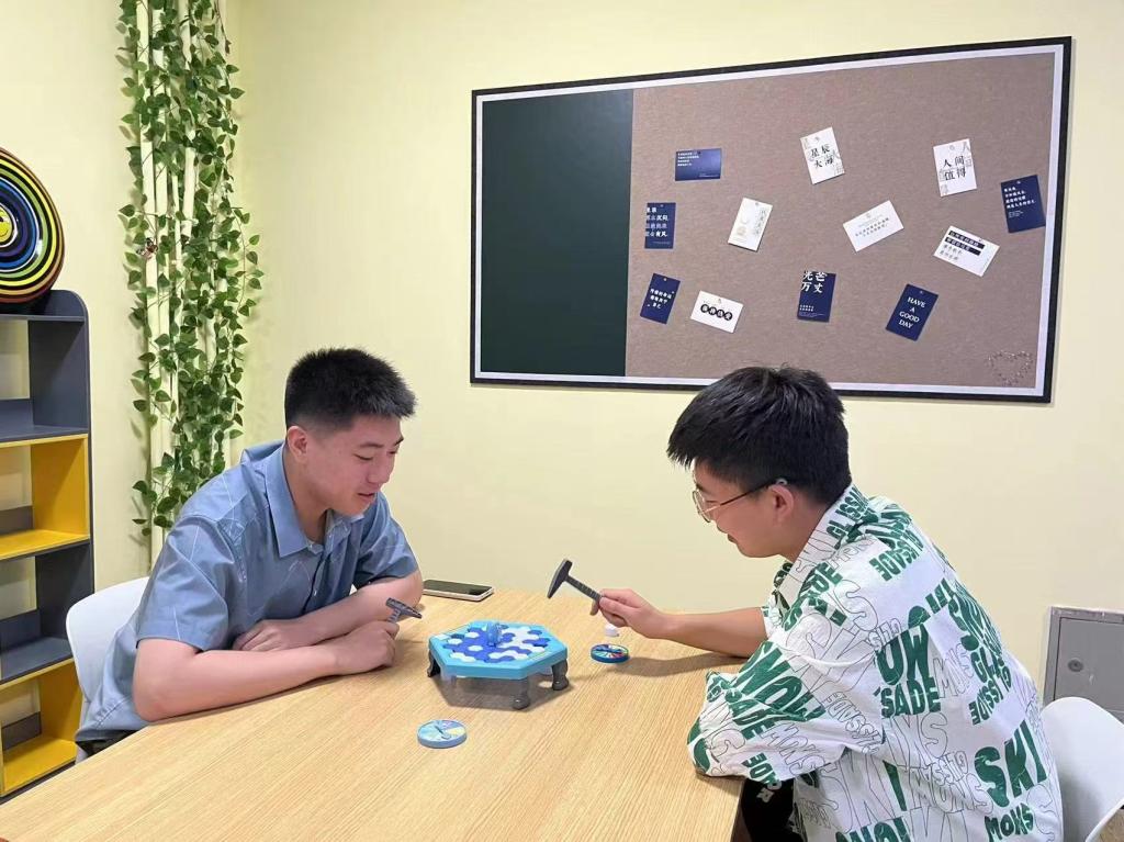 “悦心空间”开张正值考试周,同学们不仅可以在这里玩游戏缓解复习备考的压力,也可以在这里上自习,这方心灵休憩角落深受学生欢迎。