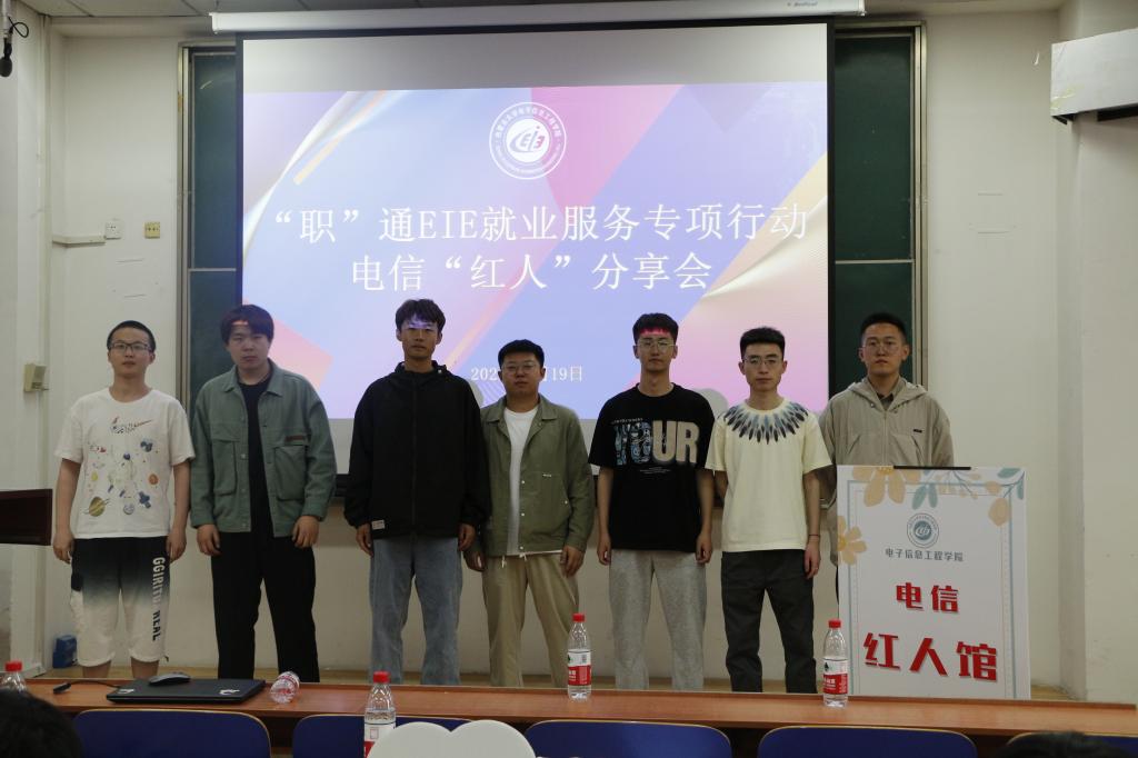 2023年4月19日下午15:00,太阳集团tyc9728“职”通EIE就业服务专项行动-电信“红人”分享会活动于卓越楼四楼阶梯教室顺利举行。本次活动邀请到了学院2019级七位优秀学生作经验分享,2020级全体同学参加。