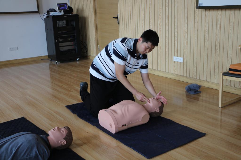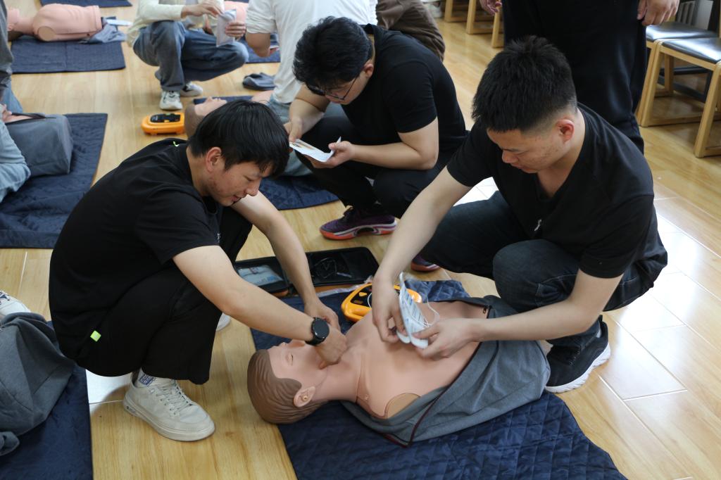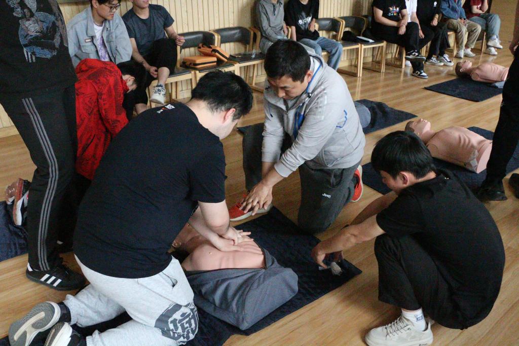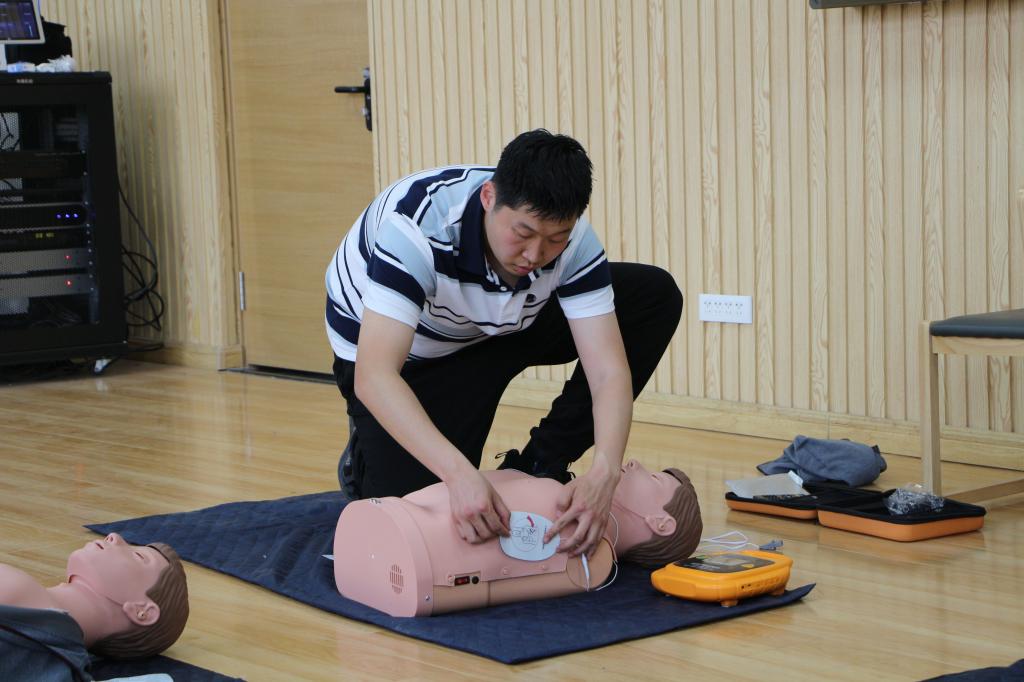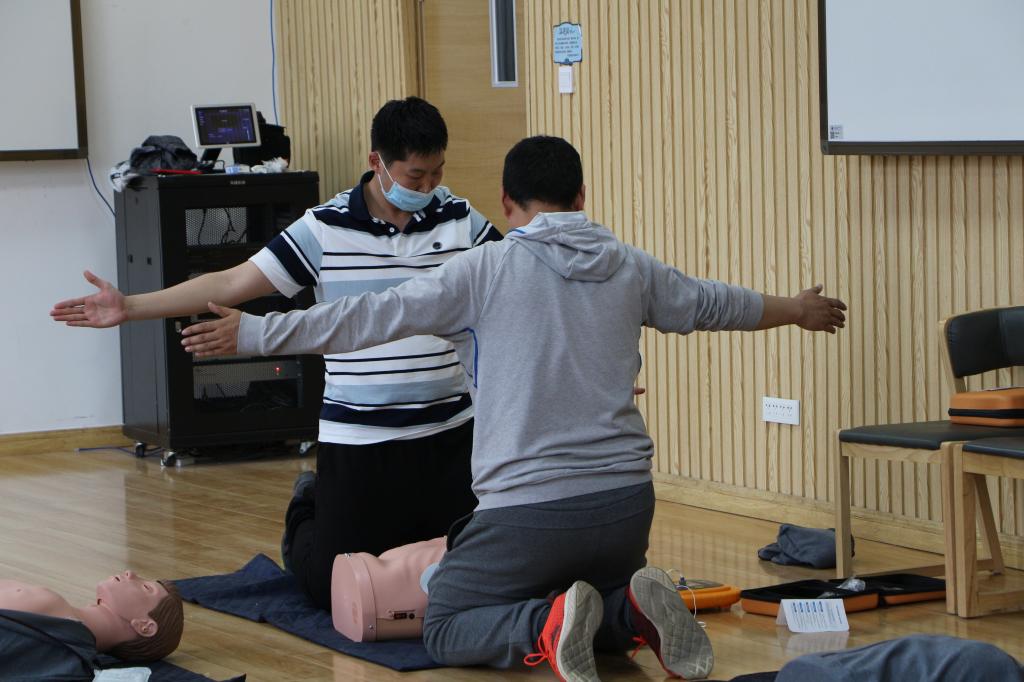 本次培训由太阳集团tyc9728白云波老师、保卫处阿斯罕老师做指导,采取理论讲授和实操练习相结合的方式进行,实操过程包含心肺复苏操作、自动体外除颤仪(AED)的使用。