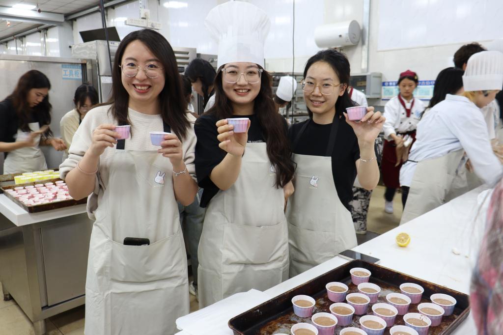 活动伊始,专业老师向大家介绍了制作纸杯蛋糕的步骤并演示了每个步骤的操作方法,同学们认真聆听、仔细观察,熟悉每个步骤和要点。随后大家纷纷动手制作属于自己的纸杯蛋糕。从调制面糊、装入纸杯,到装饰点缀,每一个步骤都凝聚着同学们的认真与热情。随着烤箱的转动,香甜的气味逐渐弥漫在空气中,一个个精美的纸杯蛋糕呈现在大家面前。同学们迫不及待地品尝着自己的劳动成果,脸上洋溢着幸福又甜蜜的笑容。