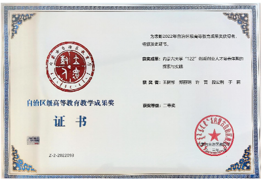 一、获奖成果:9728太阳集团“122”创新创业人才培养体系的探索与实践